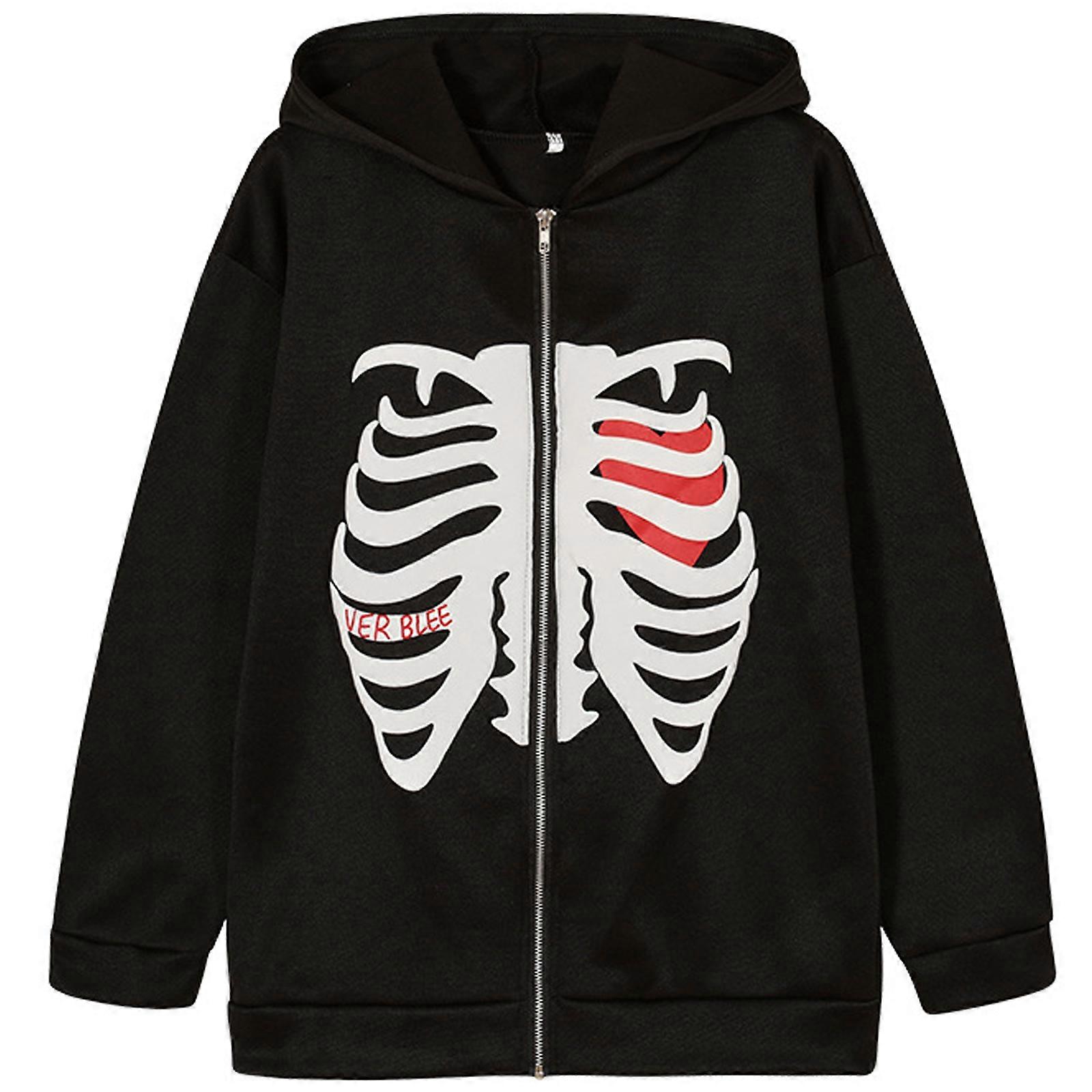 Fashion Oversize Skull Print Zipper Hoodie Skeleton Jacket Hip Hop Unisex Cool Casual Streetwear