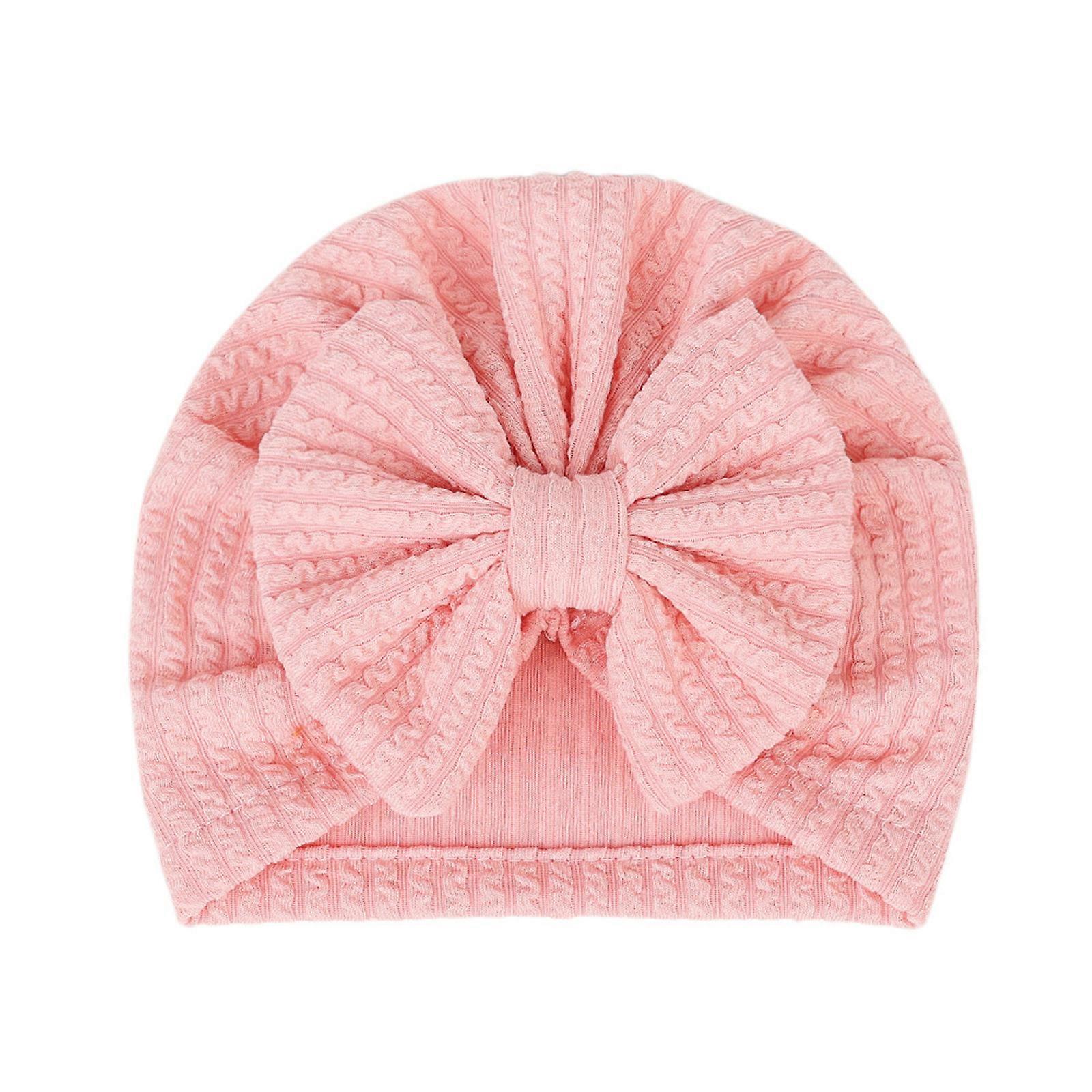Fashion Big Bowknot Infant Baby Girl Turban Hat Headwraps Waffle-Knit Solid Color Soft Nursery Beanie Cap Hospital Hat Pink