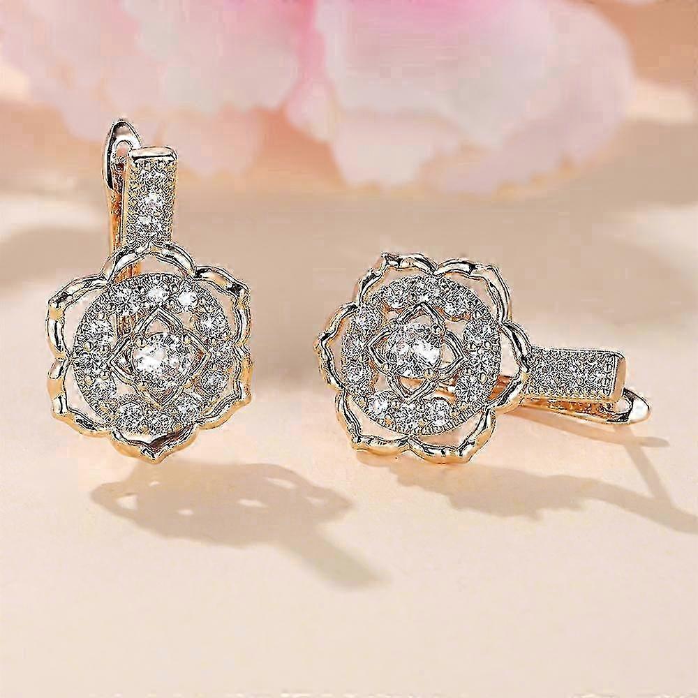 Fashion Zircon Hoop Earrings Women Gold Color Hollow Flower Drop Earrings Fine Wedding Party Jewelry