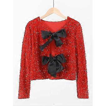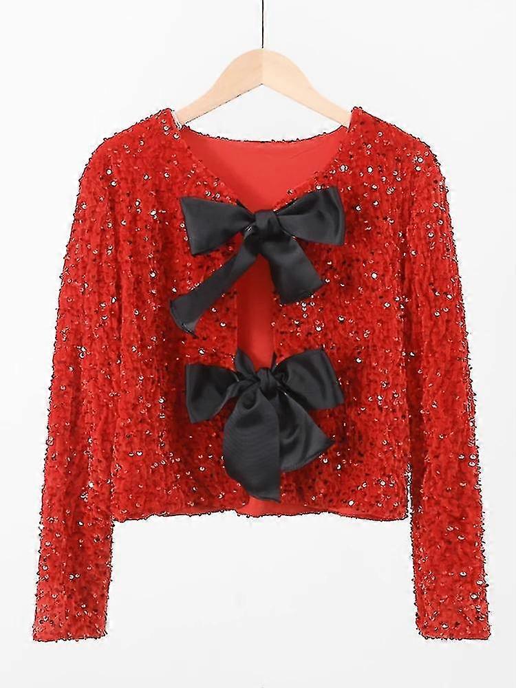 Fashion Holiday Tie-front Sequined Jacket For Women Y2k Shiny Chic Cropped Coat Female Elegant Long Sleeve Lady Party Outerwear