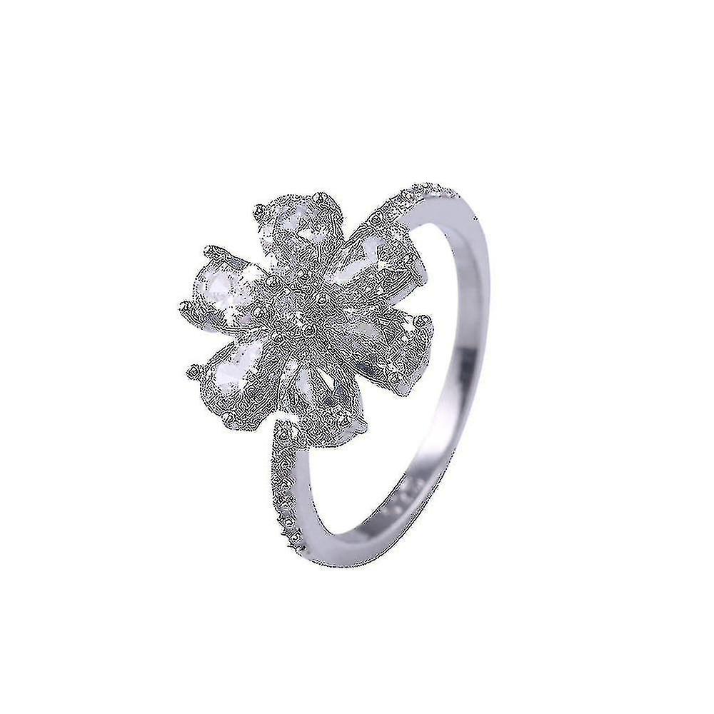 New Fashion Crystal Wedding Ring Exquisite Petals Engagement Rings for Women Romantic Silver Color Party Jewelry Gift