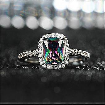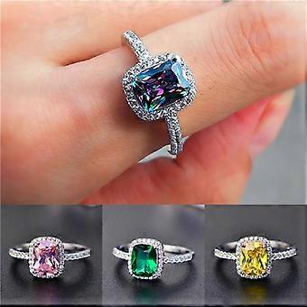 Fashion Mystic Rainbow Pink/Green Square Shaped Crystal Rings Silver Color Wedding Jewelry Female
