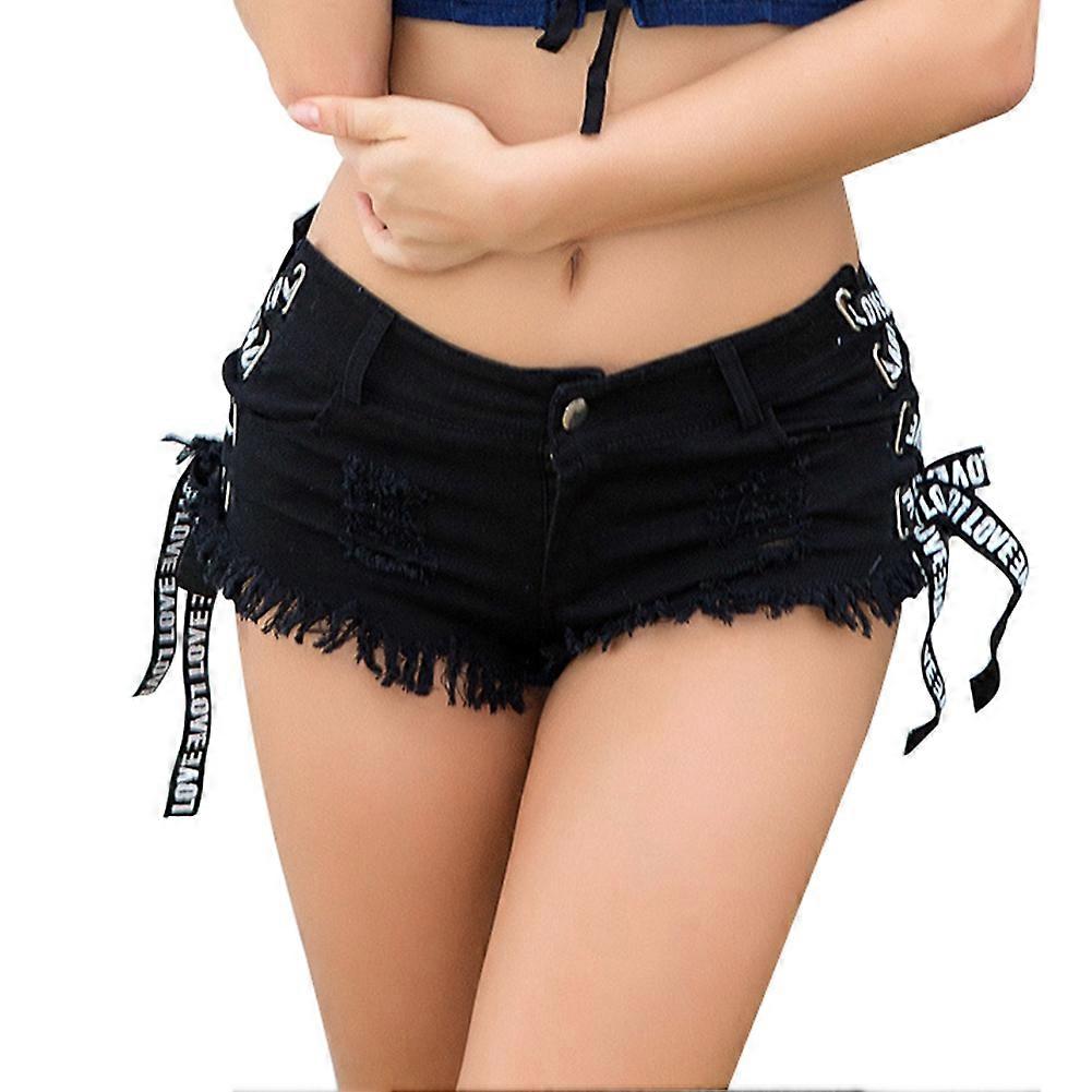 Fashion Women Summer Jeans Short Pants High Waist Hole Denim Shorts (Black S)