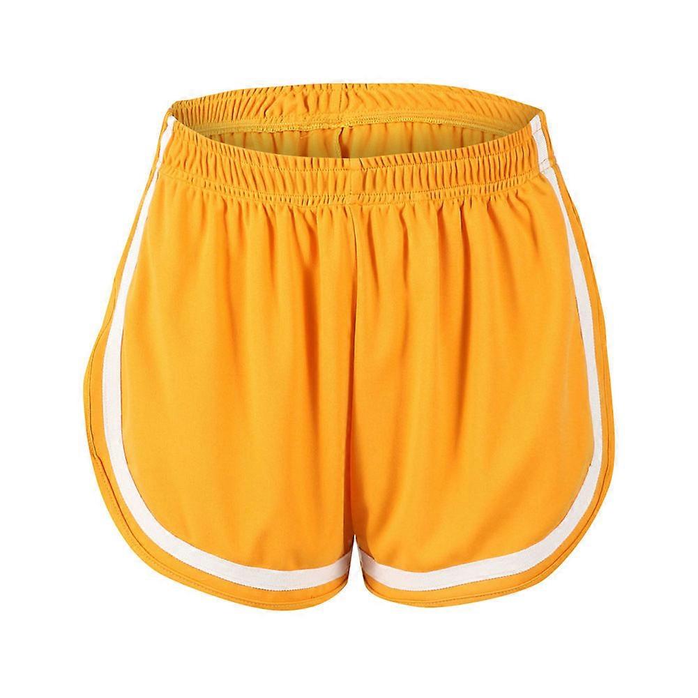 Fashion Women Solid Color Summer Sports Pants Beach Casual Shorts (Yellow L)