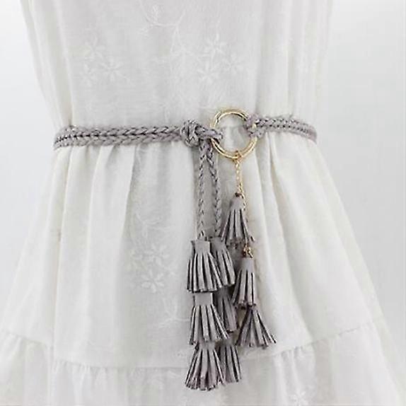 Fashion Women Solid Color Braided Tassel Belt Boho Girls Thin Waist Rope Knit Belts for Dress Waistbands Accessories