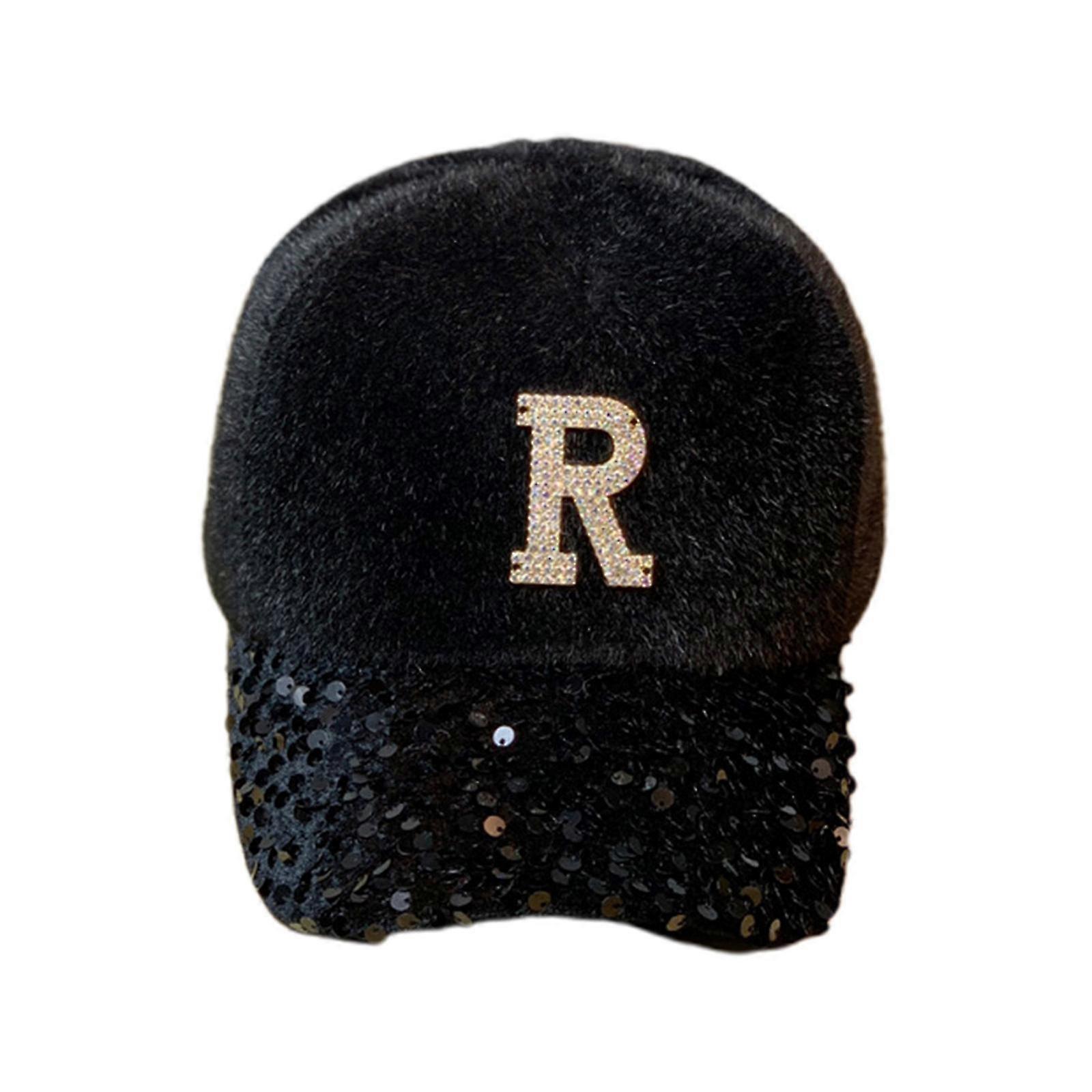 Fashion Sequins Baseball Cap Letter R Peaked Cap Warm For Chilly Outdoor Sports