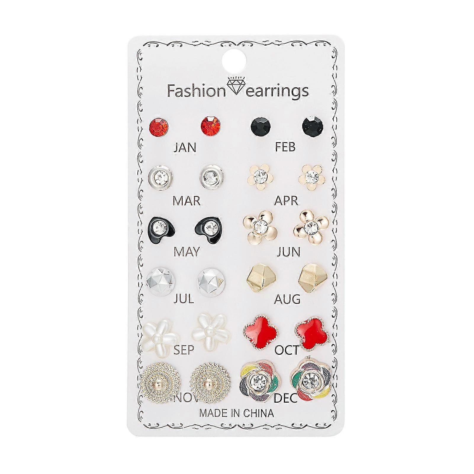Fashion Flower Rhinestone Ear Studs with 12 Pairs, All-match Delicate Statement Earring, for Party Wedding