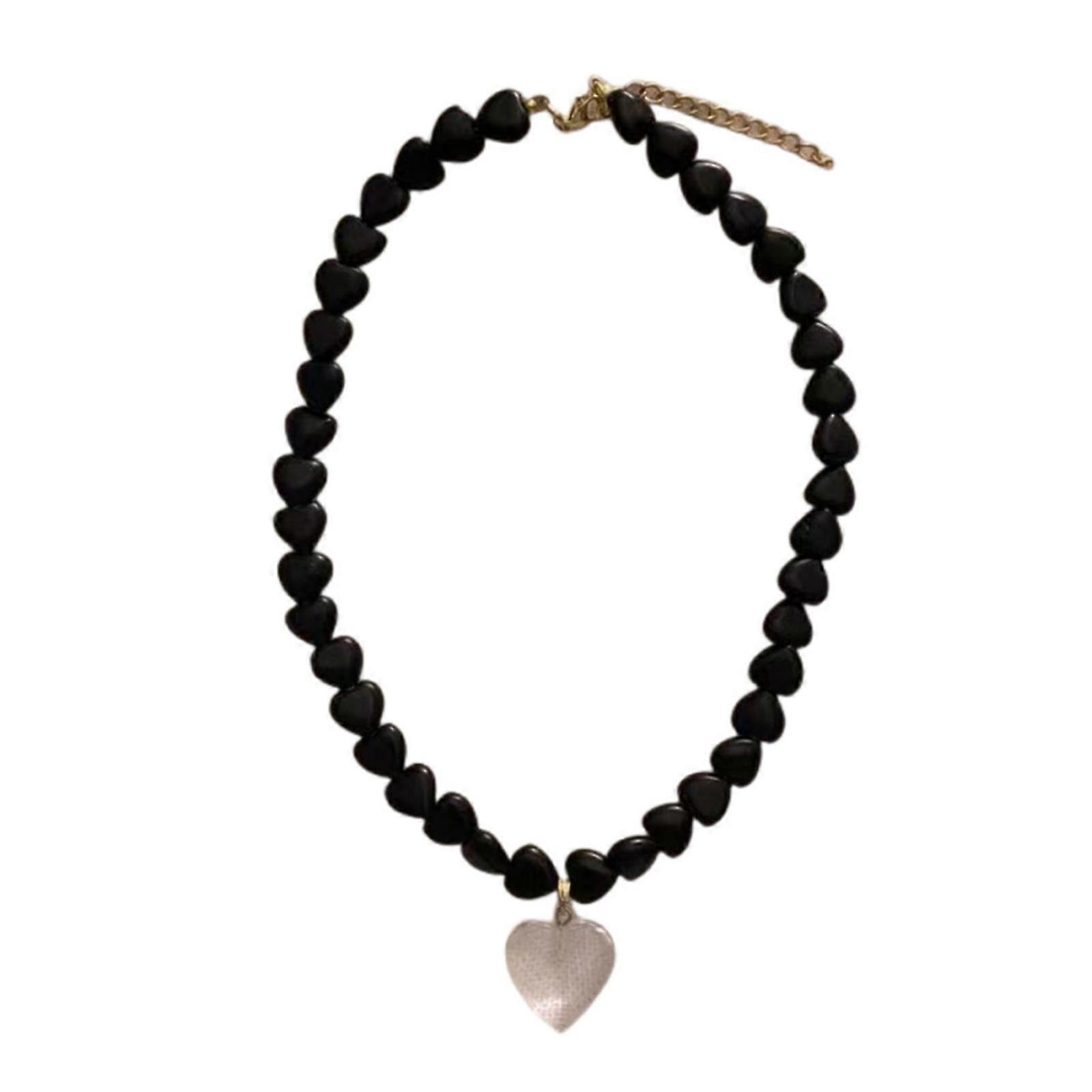 Fashion Simple Heart Pendant Necklace Choker Neck Chain Elegant Clavicle Chain Natural Stone Beaded Necklace Y2K Jewelry