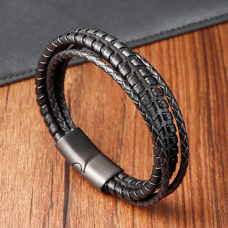 Fashion Retro Multi-layered Leather Cord Braided Jewelry Genuine Leather Stainless Steel Men's Leather Cord Bracelet Lovers Gift