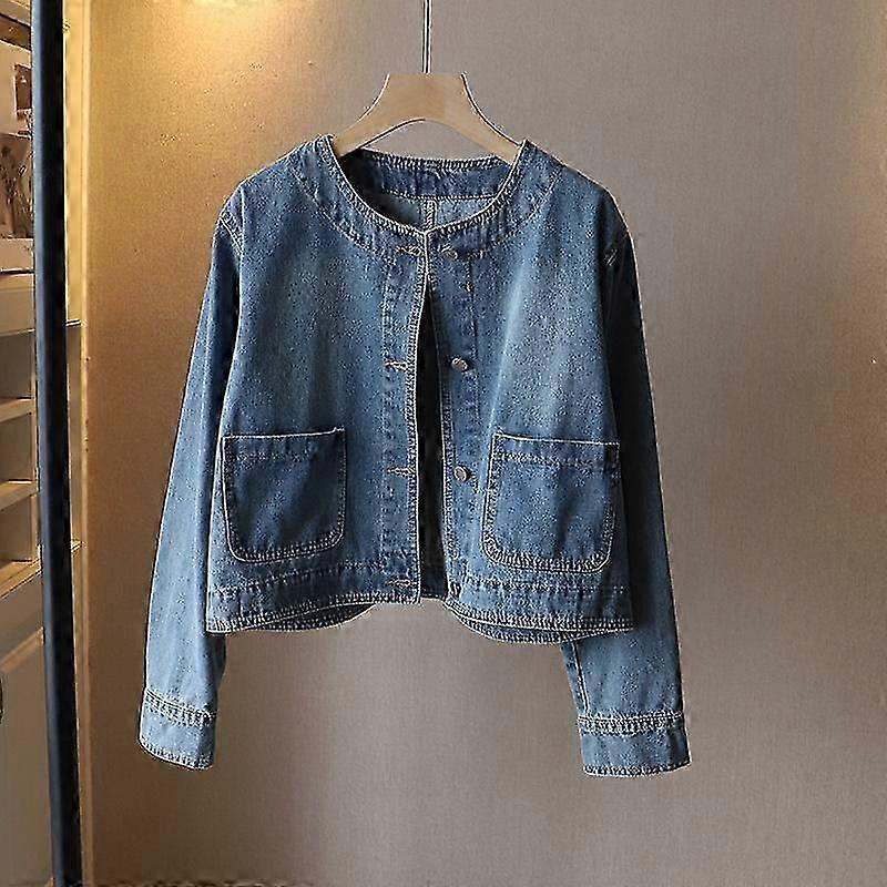 Fashion O-neck Denim Jacket Women Short Coat Spring Autumn Single-breasted Pocket Loose Tops Female Casual Jean Outerwear