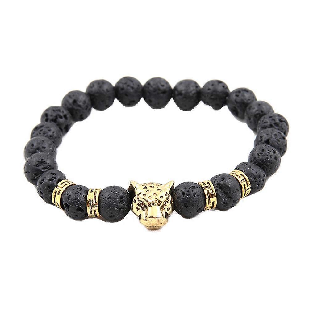 Fashionable Natural Volcano Lava Stone Beaded Bracelet Leopard Head Bracelets (#1)