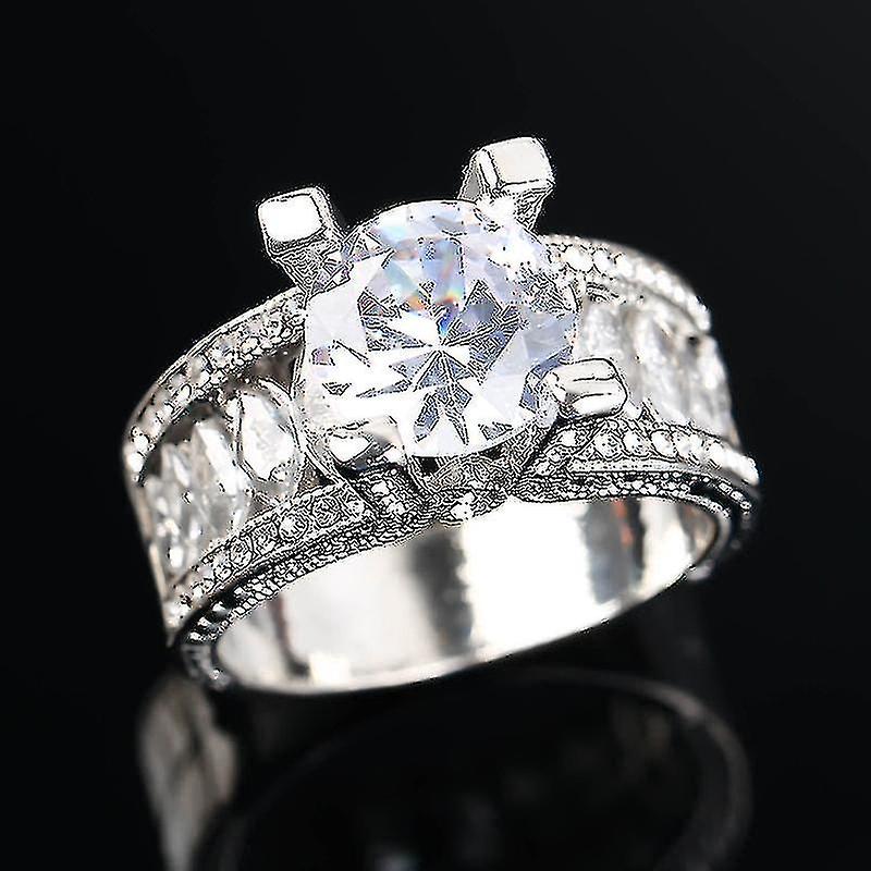 Fashion Silver Plated Round Cut CZ Stone Ring Micro Paved Oval Crystal Rings For Women Ladies Wedding Party Jewelry Gift A4M837