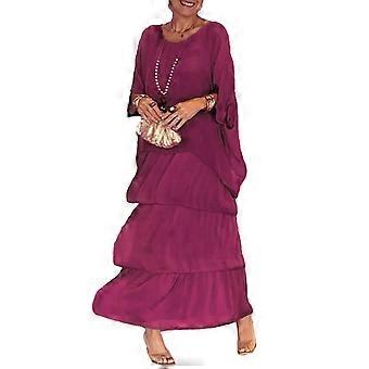 אופנת נשים אירופאי ואמריקאי סגנון נשים צווארון עגול שרוולי עטלף חצאית ארוכה