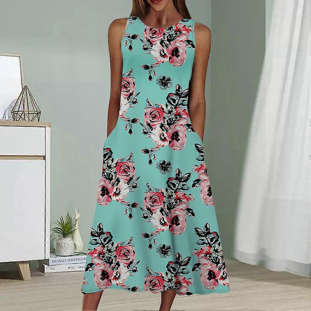 Summer Fashion Sexy Sleeveless Dress Soft Casual 3D Wild Flower Print Dress Sleeveless Sling Dress