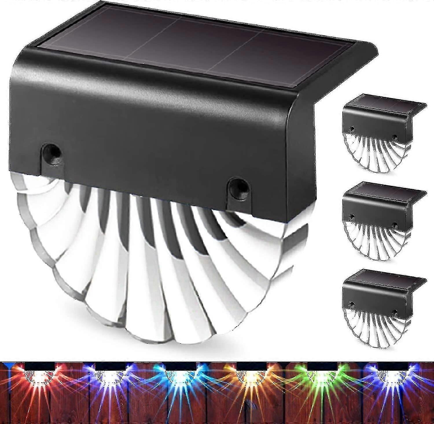 Outdoor Solar Garden Lights, LED Outdoor Wall Lights, 4 Pack Warm White + RGB Color, Solar Fence Lig