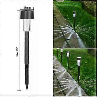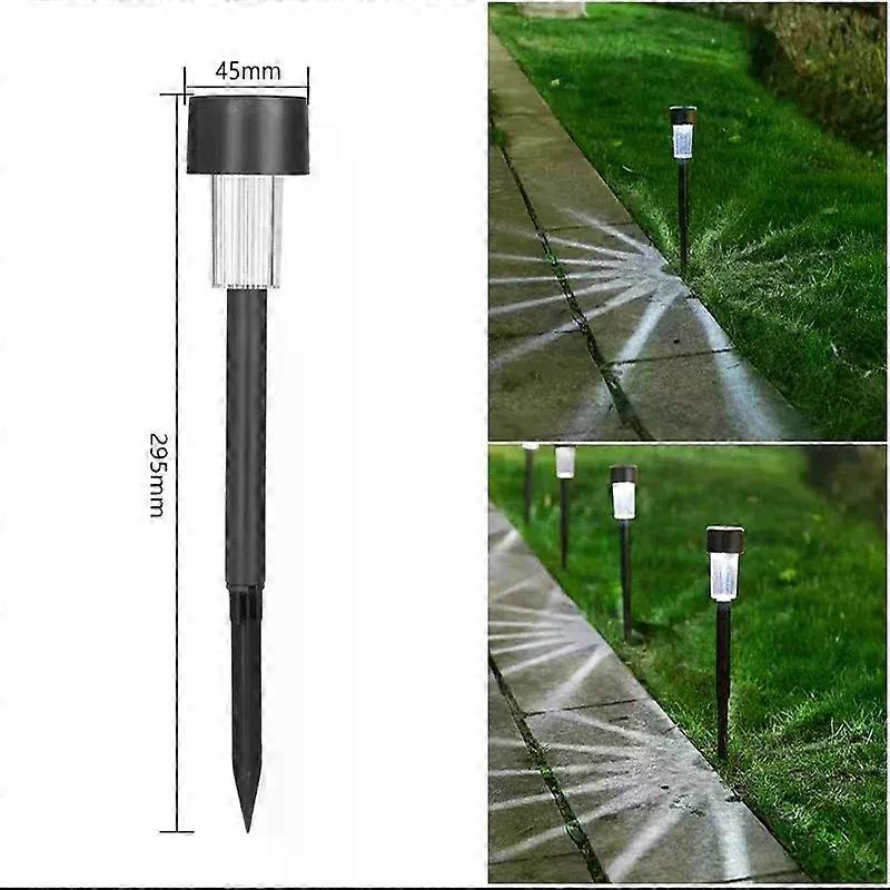 prolonged usage time. The solar panel converts sunlight during the day time and recharge the battery. At night the light turn on automatically. Light assemblies, stake sections, connectors, and durable ground spikes are included. This energy-efficient, low-maintenance solar lights add a charming, decorative glow to your driveway, patio, or flowerbeds. Absolutely NO WIRING and easy to install Solar Battery:2V 40mA Recharged by solar panels under sun light Bright white/warm white/multiple color Ideal for areas where conventional electrical supply is not available material:ABS CE certified LEDs can last up to100,000 hours Automatic sensor activates at dusk Lights up to Ten 8 hours if fully charged OFF/ON Switch Safe & water resistant Dimension: Height: 32.7 cm, Diameter: 4.7 cm.