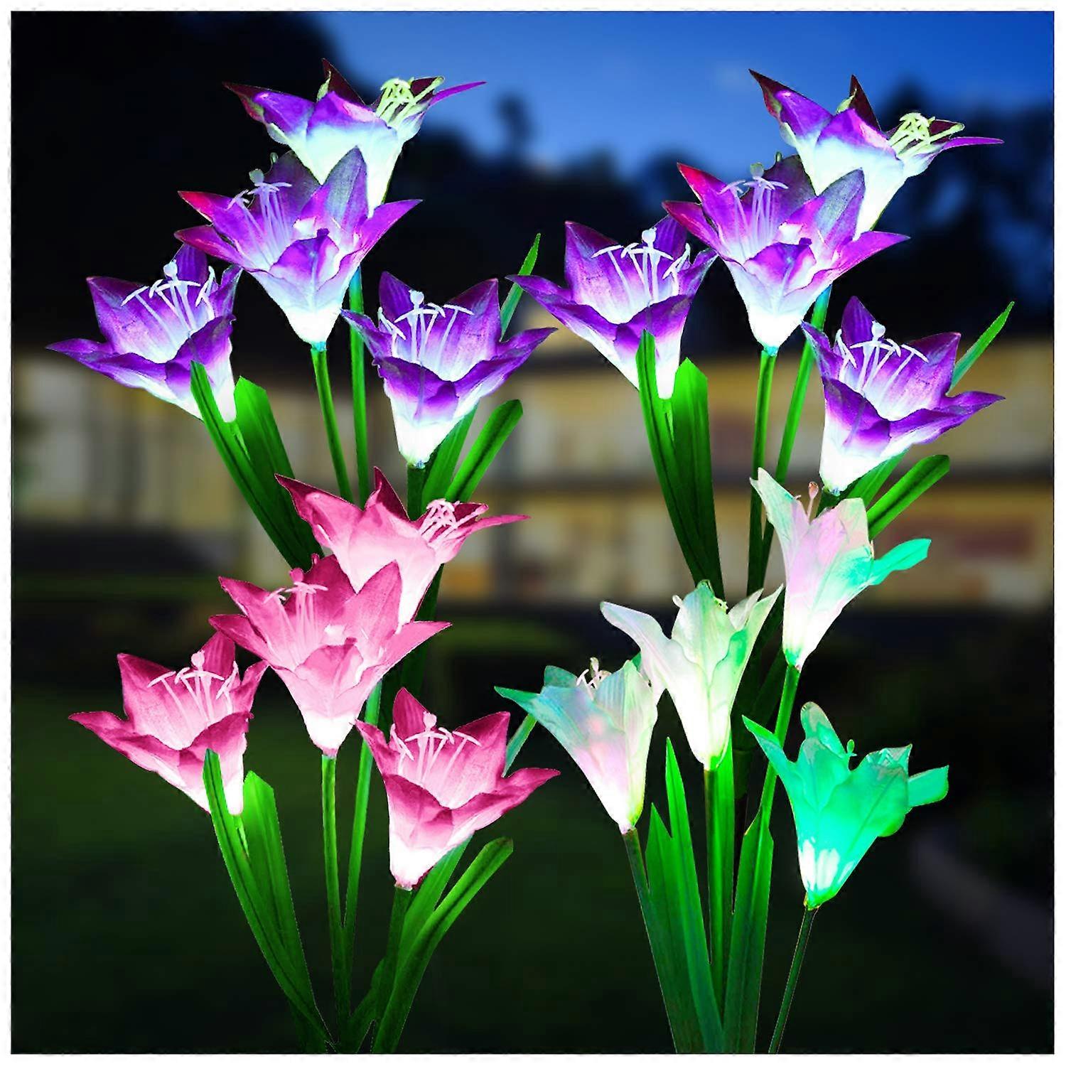 Outdoor Solar Lights, 4 Pack Solar Garden Lights with Bigger Lily Flowers, Waterproof Outdoor Lights for Garden