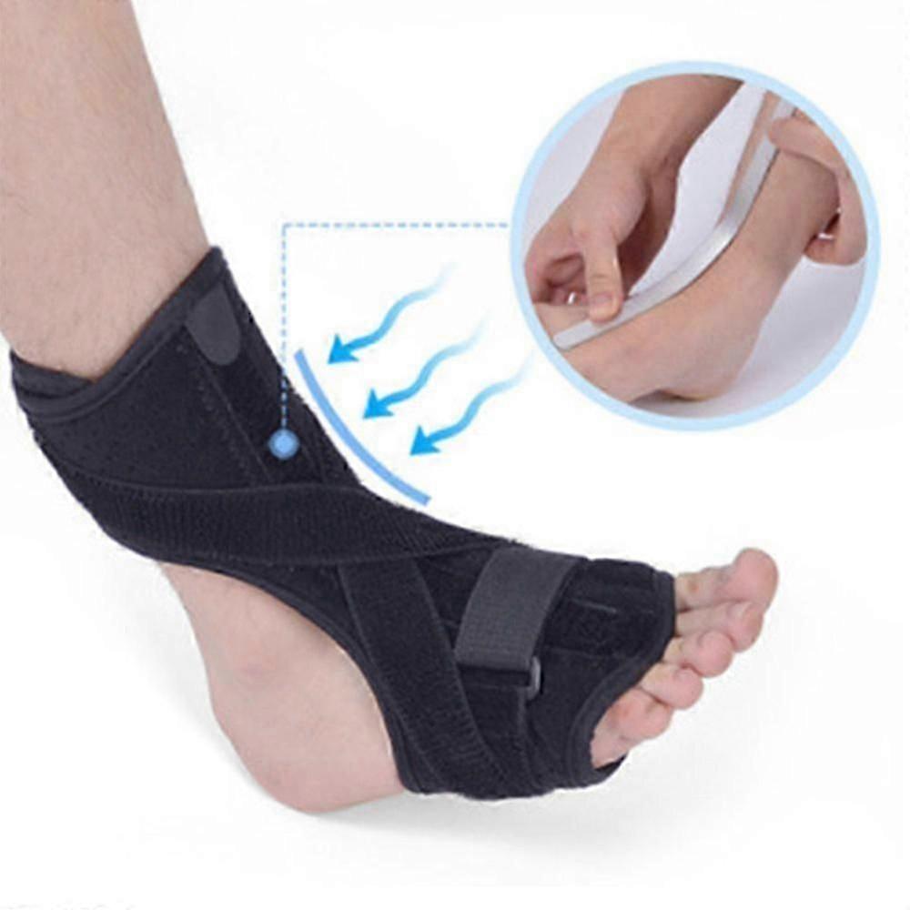 Material: foam cotton Size: 40*29.5*26cm Colour: Black Package content: 1*plantar fascia correction brace 1.Soft foam liningComfortable and breathable material, with large foam padding on the back, smooth feet, allowing you to sleep comfortably all night. The wide elastic band ensures that the bracket stays in place comfortably throughout the night without twisting or sliding. 2.One size fits most adult feet: The foot and ankle straps are fully adjustable and long enough to wrap most feet and ankles. The plantar fasciitis night splint can be used on the right and left foot. 3.Scientific design: Ultra soft, lightweight and breathable foam, no rough edges, small and compact, comfortable to wear. The area under the metal strip is equipped with comfortable padding to prevent injury. Additional filling material in toe position to better fit your foot. Separate Velcro fastening, play a stable role. Get more comfort and the strength and support you need. 4.Combination: The Plantar Fasciitis socks made from ultra-dense knitted fabric provide a standard compression for foot and ankle that can be used for sleeping at night. 5.Adjustable and comfortable: The bendable lightweight aluminum strip on the instep can keep your feet at a 90-degree angle and keep your feet in a bent position.
