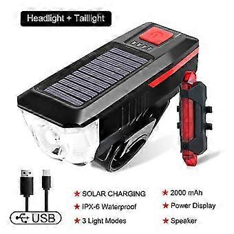 Solar Bicycle Light USB Rechargeable Power Display MTB Road Bike Front Lamp With Horn Flashlight Cycling Light Bike Accessories