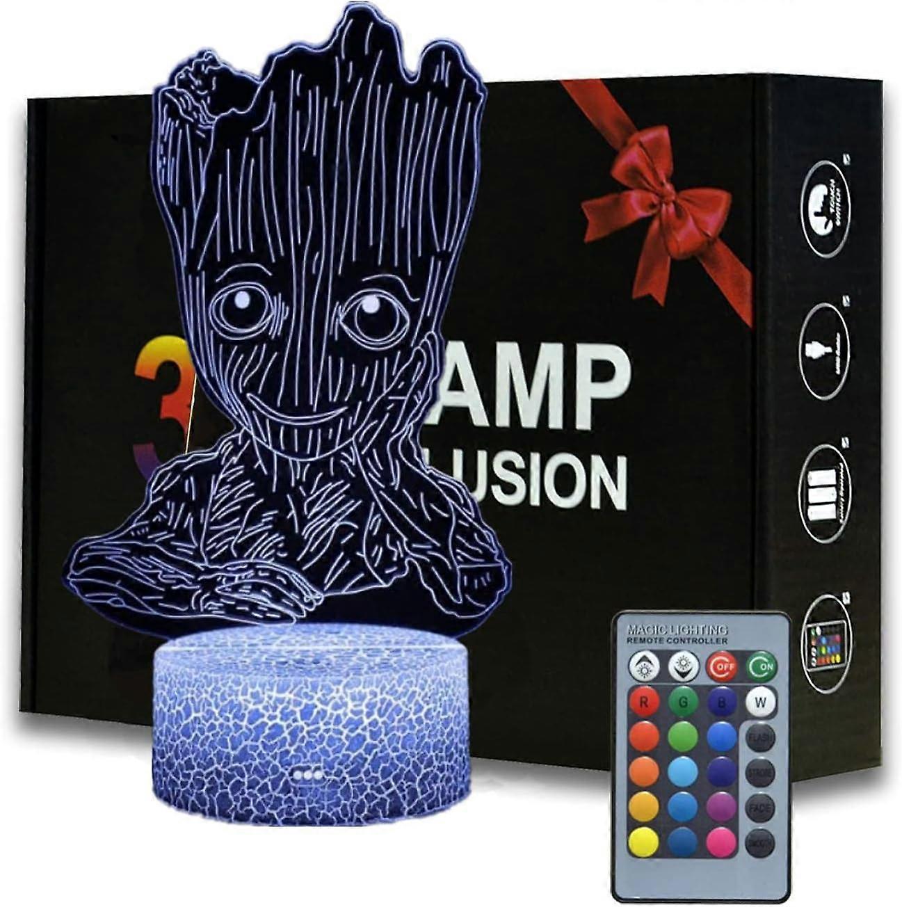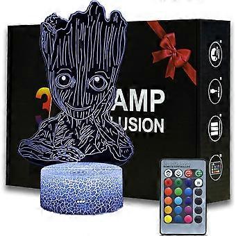 Creative 3D Night Light 16 Color Changing Dimmable Lighting Lovely Groot LED Lamp Toys for Kids Room Decor Atmosphere Light