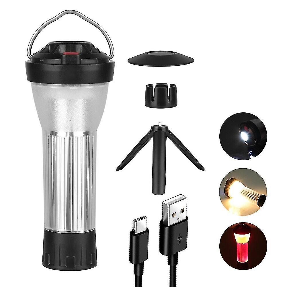 Description: product name:Multifunctional Camping Light Battery:3000mAh 18650 lithium battery brightness:Stepless dimming light color:White light, warm light, red light light source lumens:100 lumens Product stall:Double click to flash Click to shift headlight/flood light/red light strobe charging method :USB charging product weight:About 92g Applicable scene :Camping/Exploration/Emergency etc. Specifications: Magnet adsorption:Battery indicator Stepless dimming:portable hook phone charging:Type-C charging Package Included: 1* flashlight 1*Charging cable 1*Base 1* Lampshade 1*Bracket