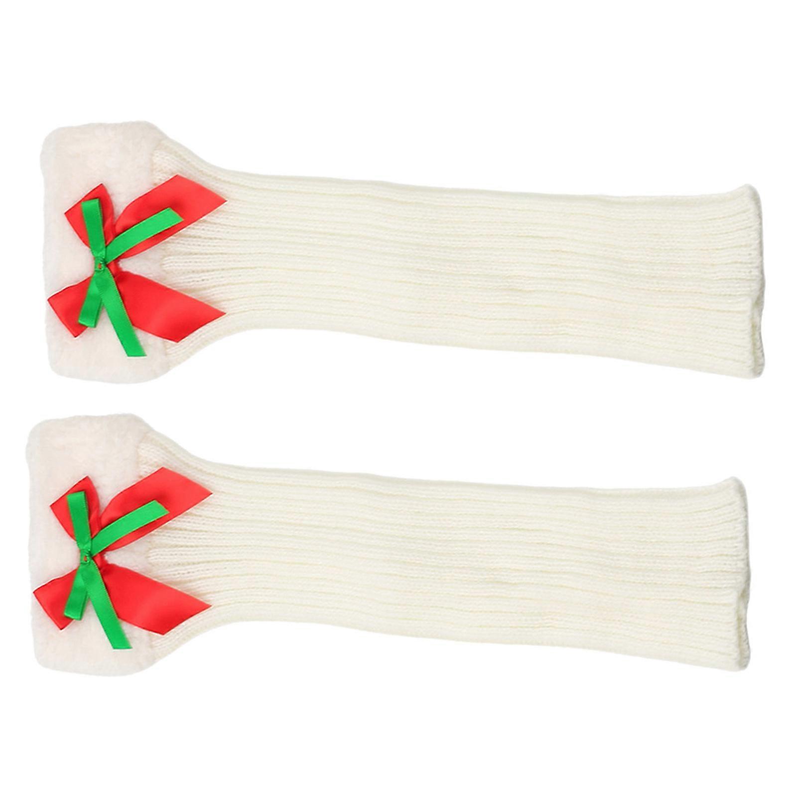 Ribbed Knitted Christmas Boot Cuffs for Women Sweet Bowknot Festival Plush Trim Leg Warmers Calf Socks for Cold Weather White