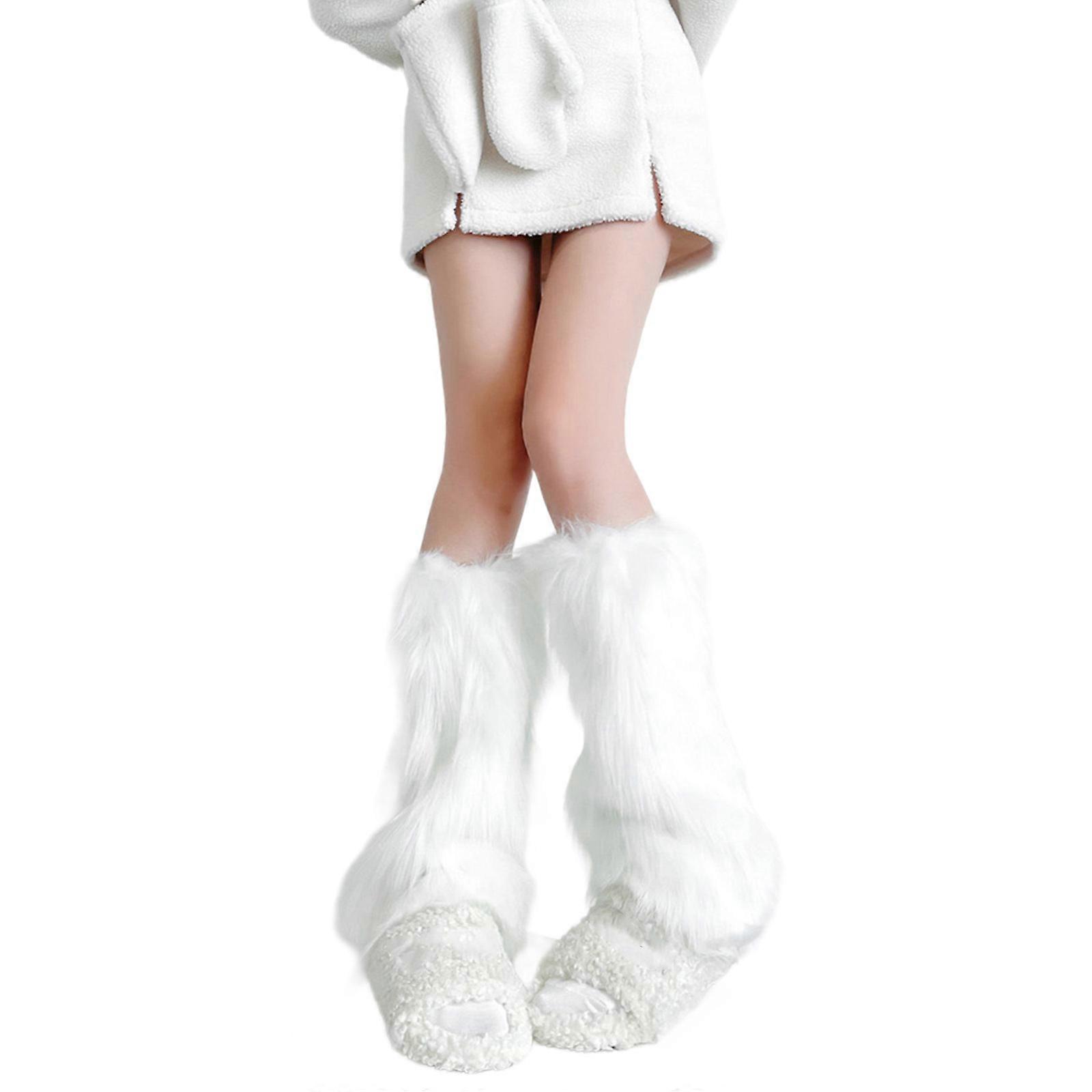 Fuzzy Boot Cuffs Leg Warmer for Women Girls Japanese Style Aesthetic Punk Solid Green Plush Leg Cover Knee Length Sock Multicolor