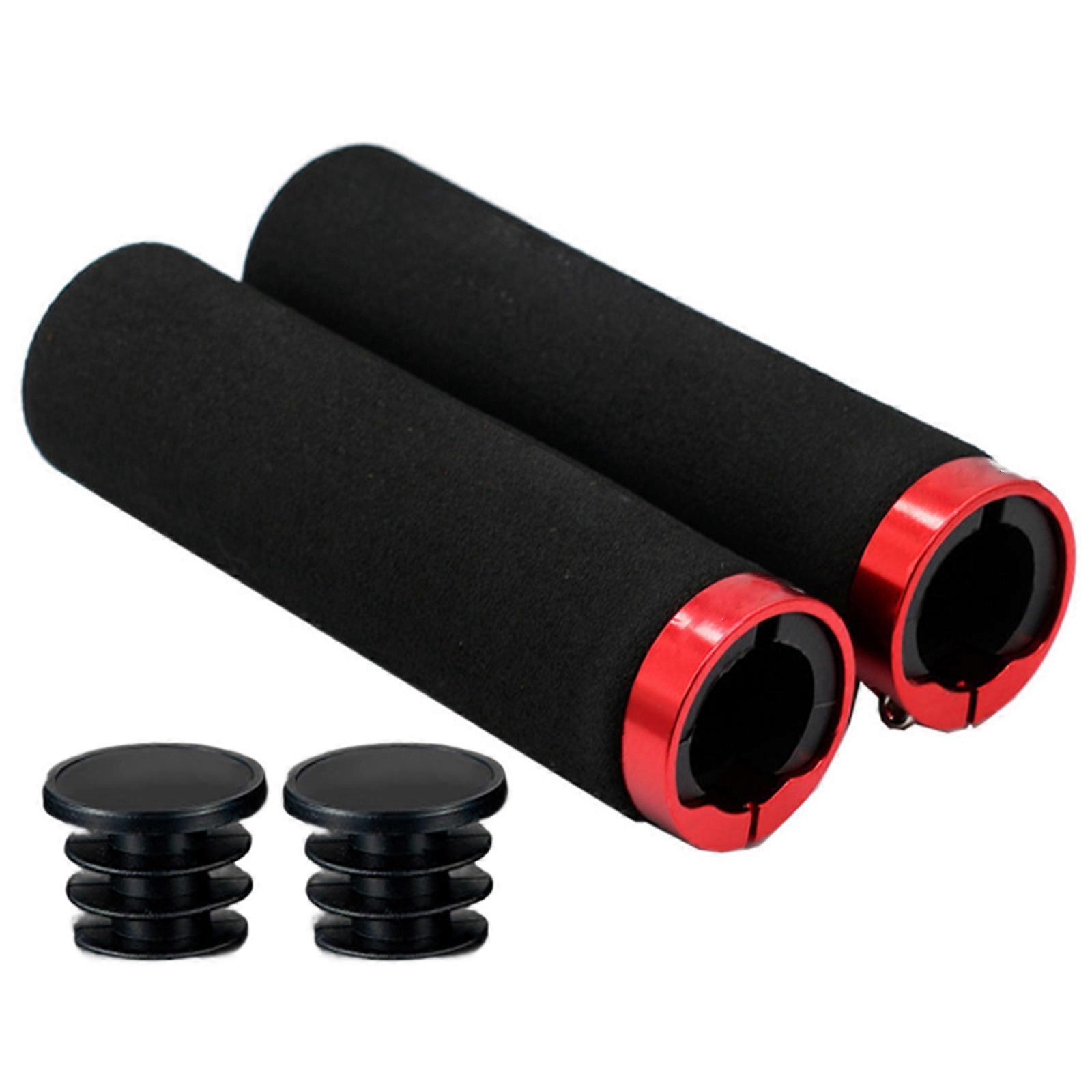 Sponge Handle Grips Bike Grips Single Lock on Handle Bar with End Plugs Shock Absorption Mountain Bike Handlebar Grip Black red ring