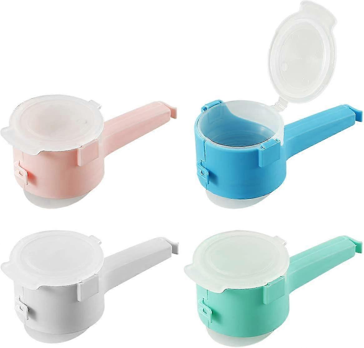 Bag Sealing Clips Food Storage Clamps With Plastic Pour Spout For Snack Cereal Pet Food 4 Pack (4, Multi-color)