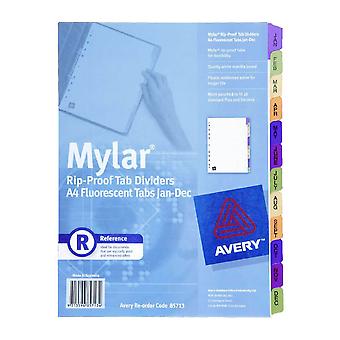 Avery January to December Mylar Tab Dividers A4 Fluoro Stylish Multicoloured