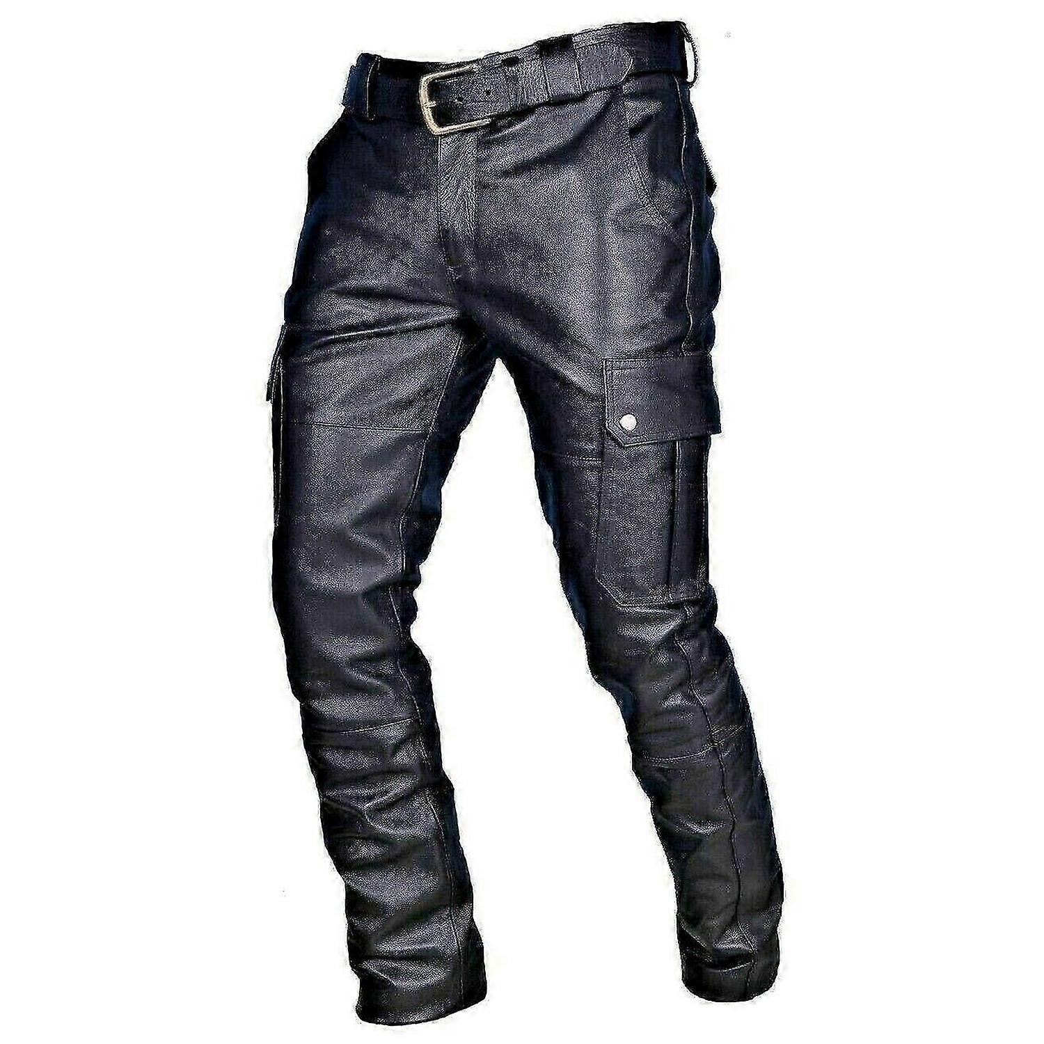 High Quality Men's Real Leather Biker Pants Fashion Black Motorcycle Pants Punk Pants