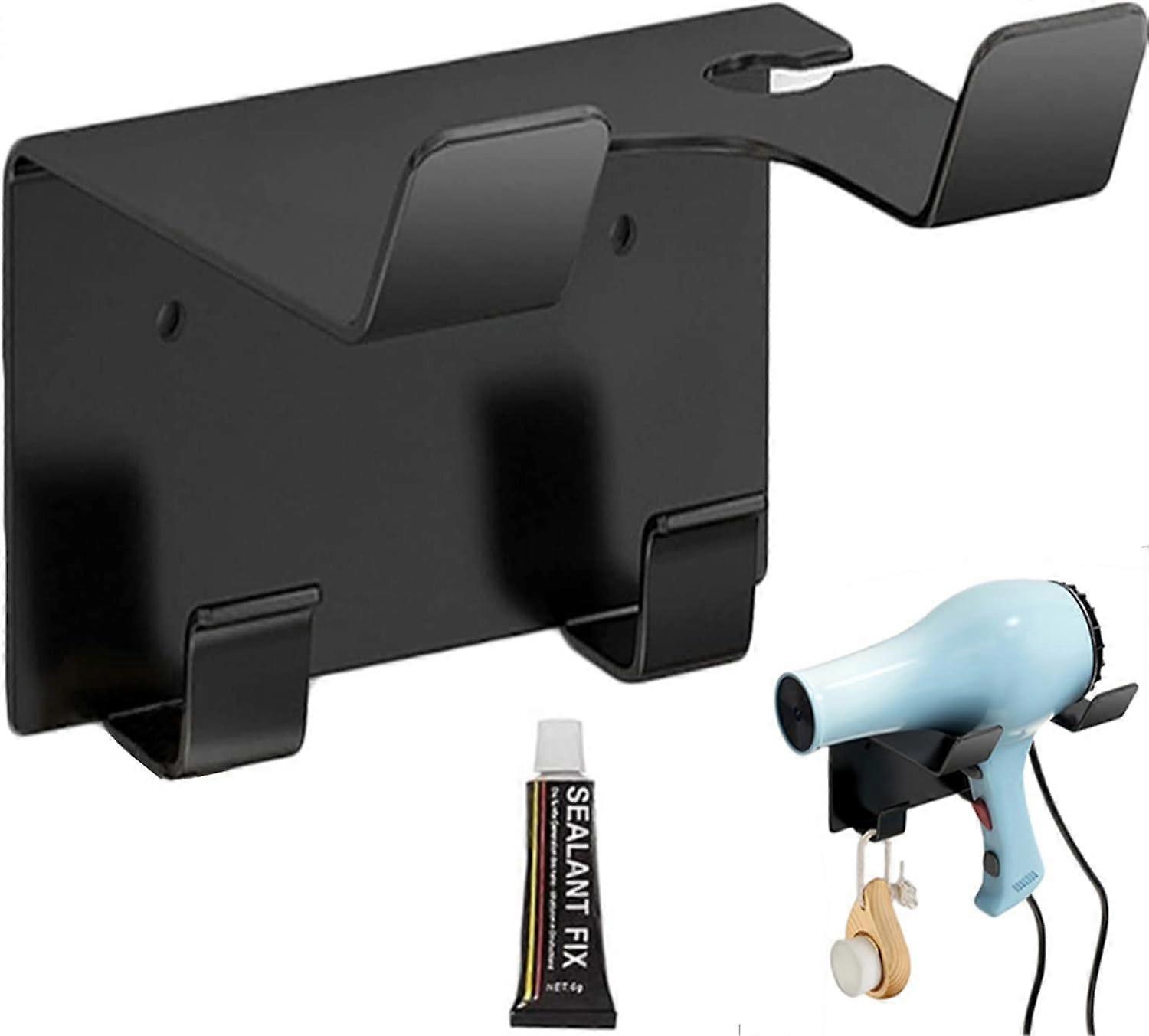 No Hole Hair Dryer Holder Black Viscose Hair Dryer Rack Stainless Steel Wall Mounted Hair Dryer Hold