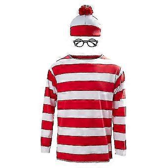 Where's Waldo Now Red And White Stripes Cosplay Costume Adult Men T Shirt Sweater+hat+glasses For Christmas Halloween Party Suit-lian