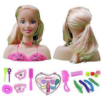 Makeup Pretend Playset for Children 17Pcs Hairdressing Styling Head Doll Makeup Toy Educational Toy Gift for Kids Girls