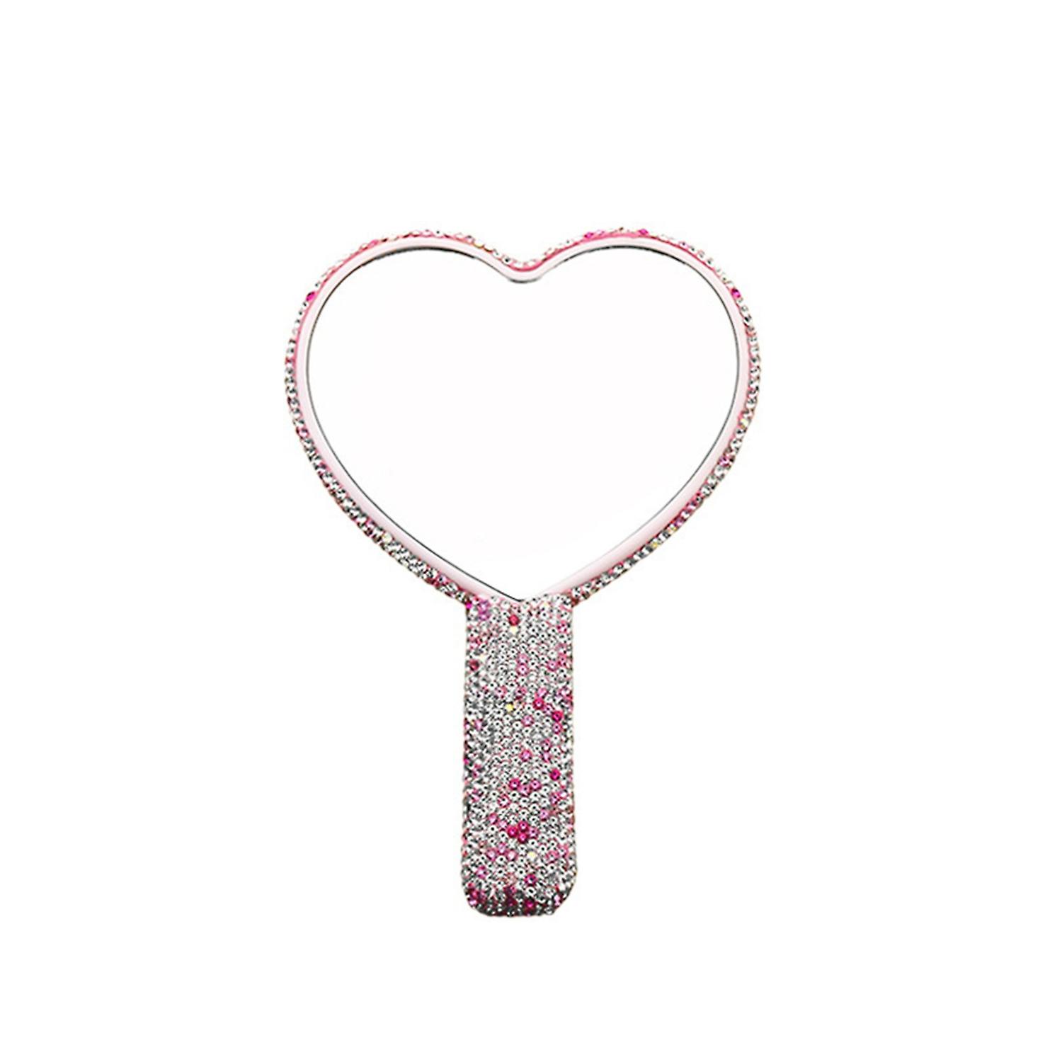 Makeup Mirror Glitter Rhinestone Decor Non-slip Handle Comfortable Grip Easy to Carry Square Round