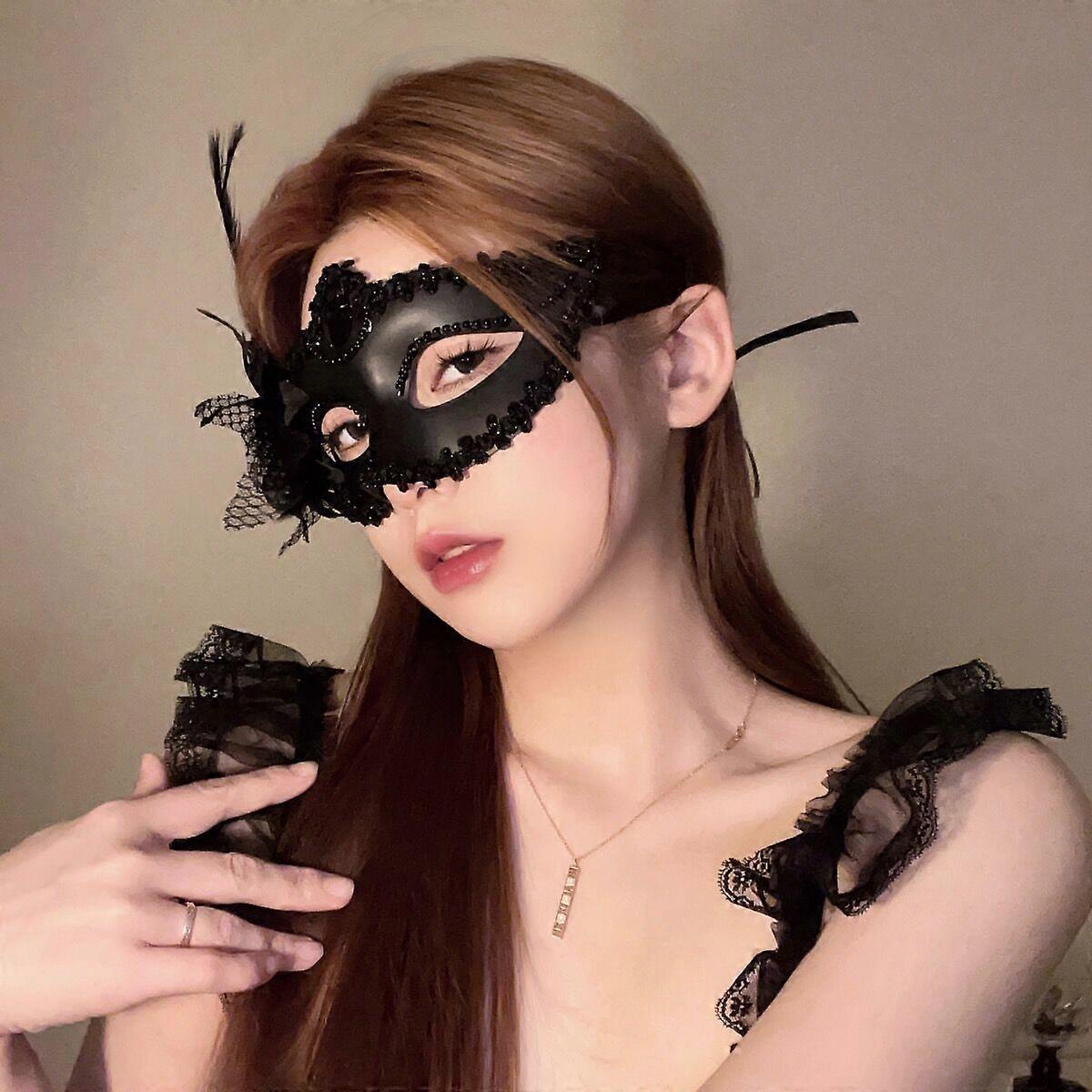 Makeup Masquerade Party Sexy Half Face Makeup Female Half Face Sexy Lace Mask Halloween Feather Mask