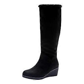 Aerosoles Binocular Tall Wedge Boot Black Faux Suede BINOCULAR-SHEARLING Women's