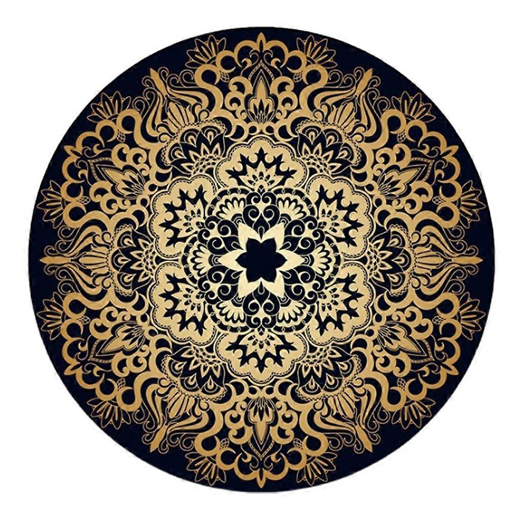European Luxurious Round Area Rug Pad Vintage Mandala Lotus Flower Print Bedside Carpet Non-Slip Circle Floor Mat