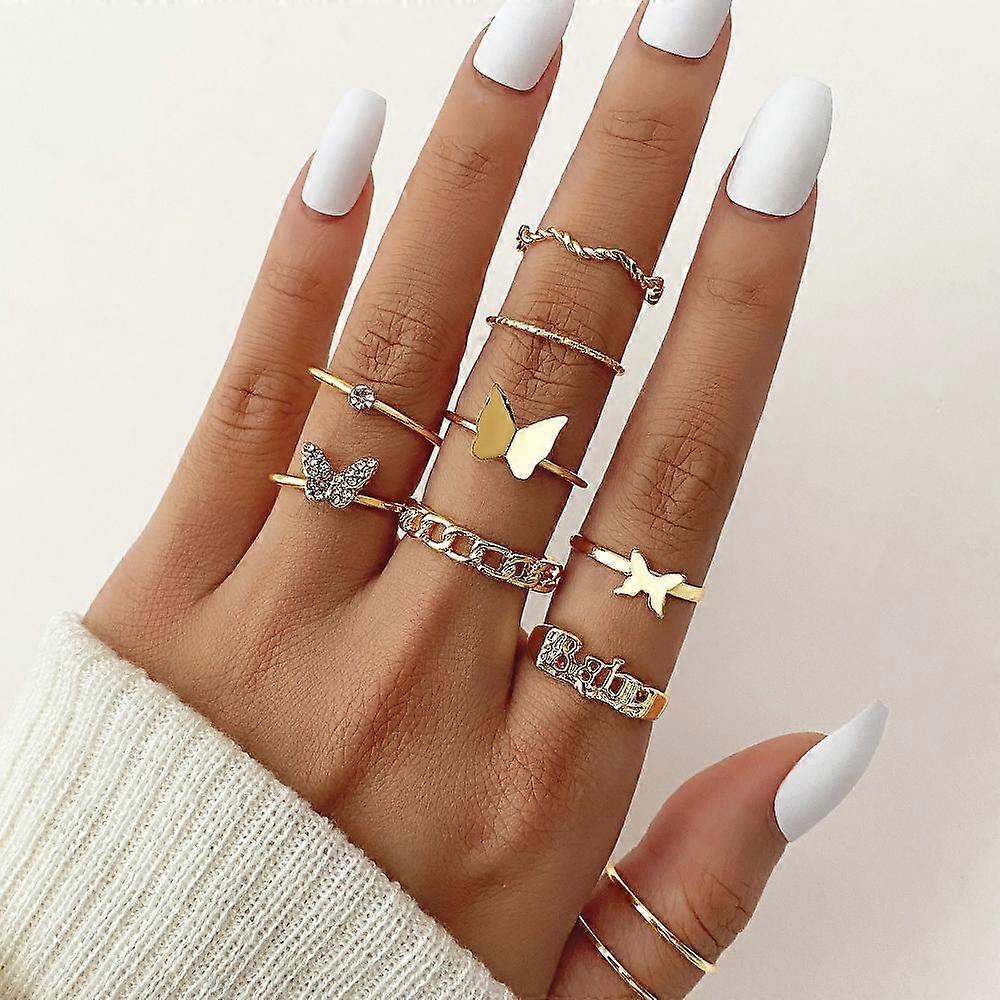 European Franc Butterfly Star Ring Set Fashion Summer Bohemian Gold Luxury Embrace Love Woman Ring Set Party Birthday Gift
