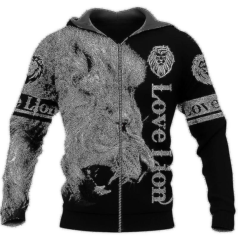 Europe and the United States men's 3D printing hoodie lion tiger sports pullover zip sweater 96456
