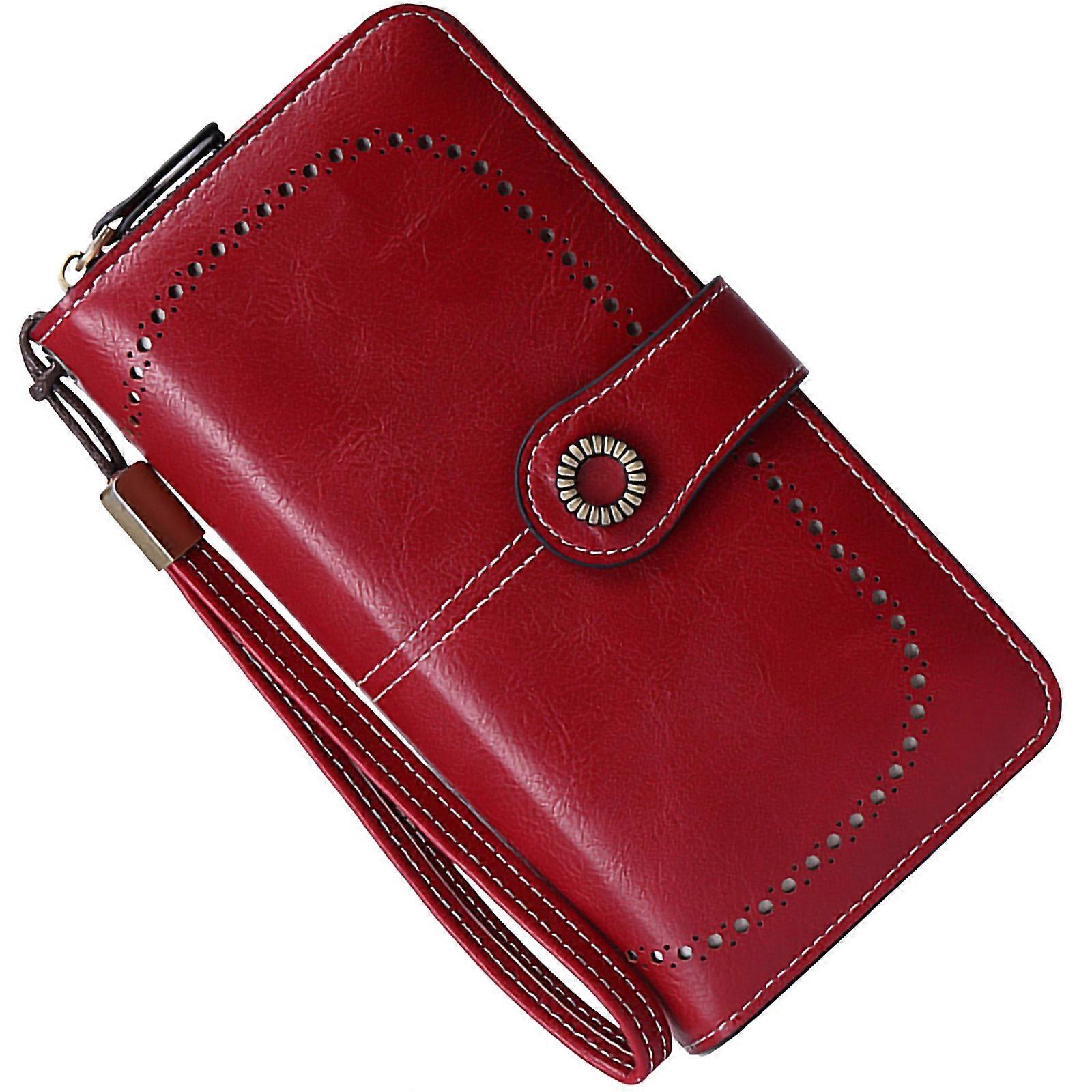 Woman Wallets PU Leather Purse Long Wallets with Card Slots Large Capacity Purse Wallets Protections Wallets for Travel Burgundy