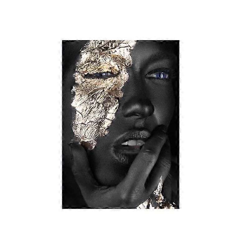 African Black Woman With Gold Foils Oil Painting On Canvas Scandinavian Posters and Prints Wall Art Picture for Living Room 25-26
