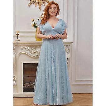 Ever-Pretty Women's Double V-Neck Floral Lace Plus Size Evening Dress Elegant Wedding Dress with Ruffle Sleeves