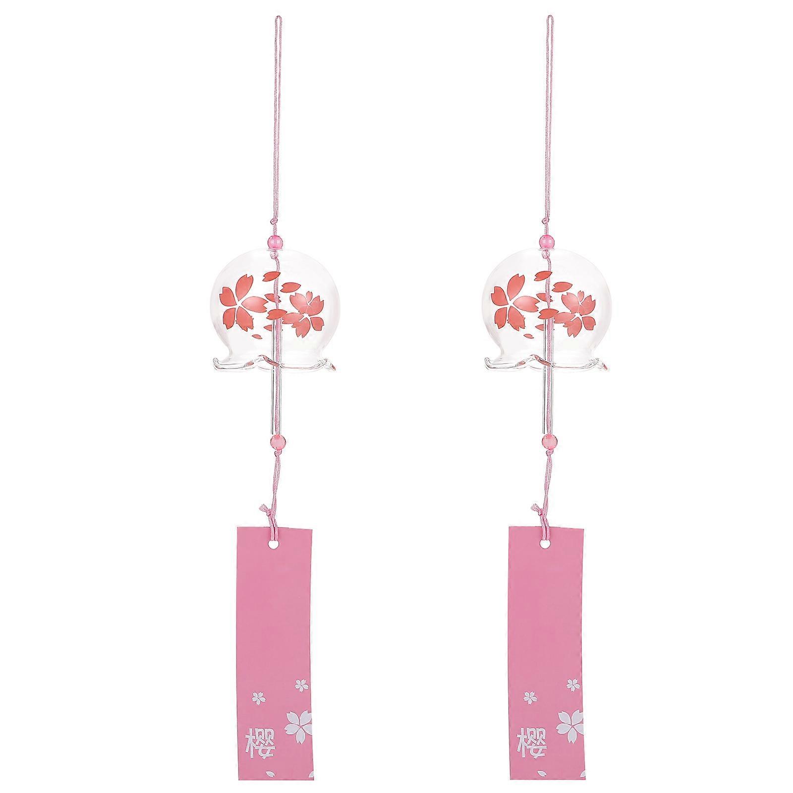 Artistic Elegance Glass Wind Chimes Pink Flower Edge For Balcony Hanging 2Pcs
