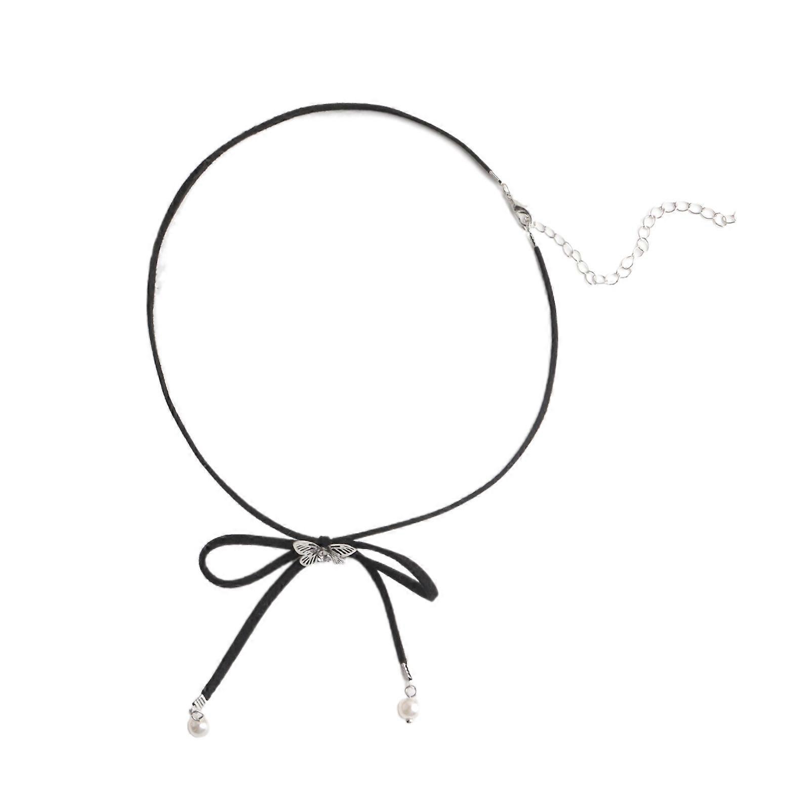 Elegant Bowknot Choker Necklace Pearl Butterfly Collar Clavicle Chain Minimalist Metal Alloy Jewelry for Women Teen Girl