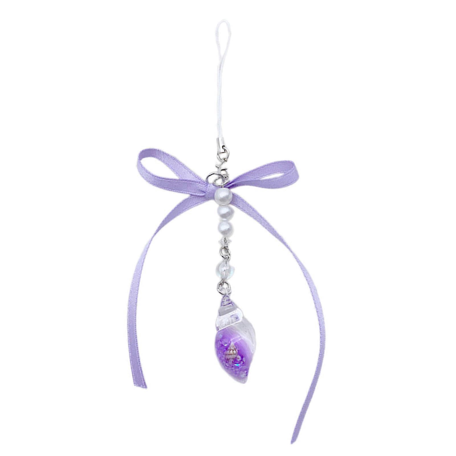 Elegant Bowknot Phone Case Chain with Sweet Ribbon Decoration Vibrant Beaded Pendant for Cellphone Camera Purple