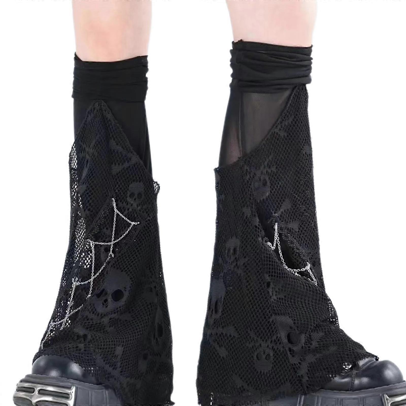 Alternative Hollowed Skull Fishnet Leg Warmer Flared Socks Harajuku Punk Stockings Mesh Over Knee Leg Sleeve Foot Cover Black