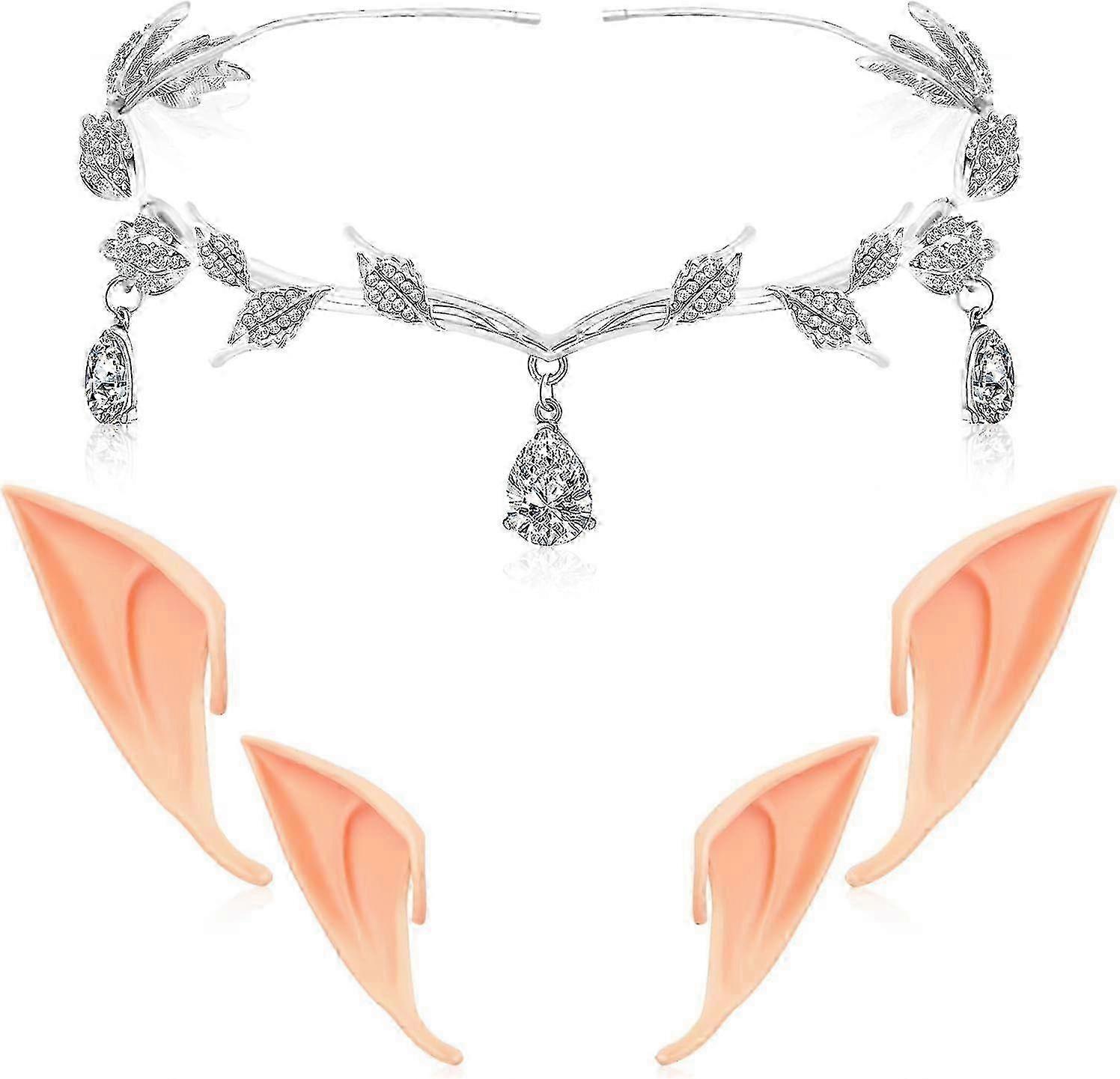 Elf Tiara And Ears Set Crystal Princess Crown Tiara For Women Wedding Party Fairy Elf Ears Cosplay Halloween Szrh A-f