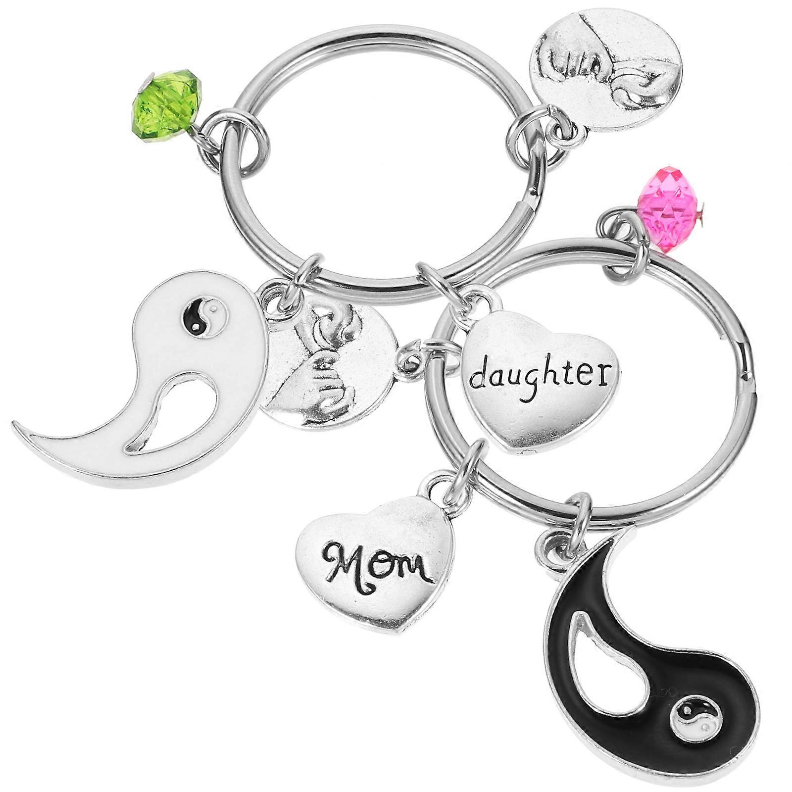 Mom Daughter Keyrings Couple Design Bag Charm Key Decoration Car Key Accessory Round Highly Polished 1 Pair