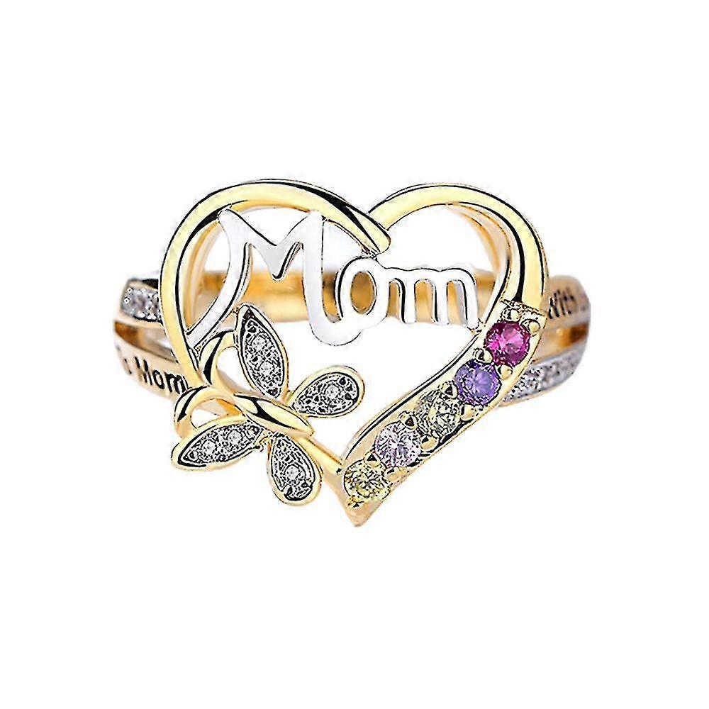 Mother's Day Mom Letter Ring Fashion Butterfly Colored Diamond Ring Jewellery Gift